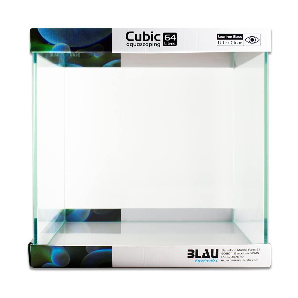 Blau akvarie CUBIC Aquascaping 64 liter (40x40x40) er et stilrent og minimalistisk akvarium på 64 liter.