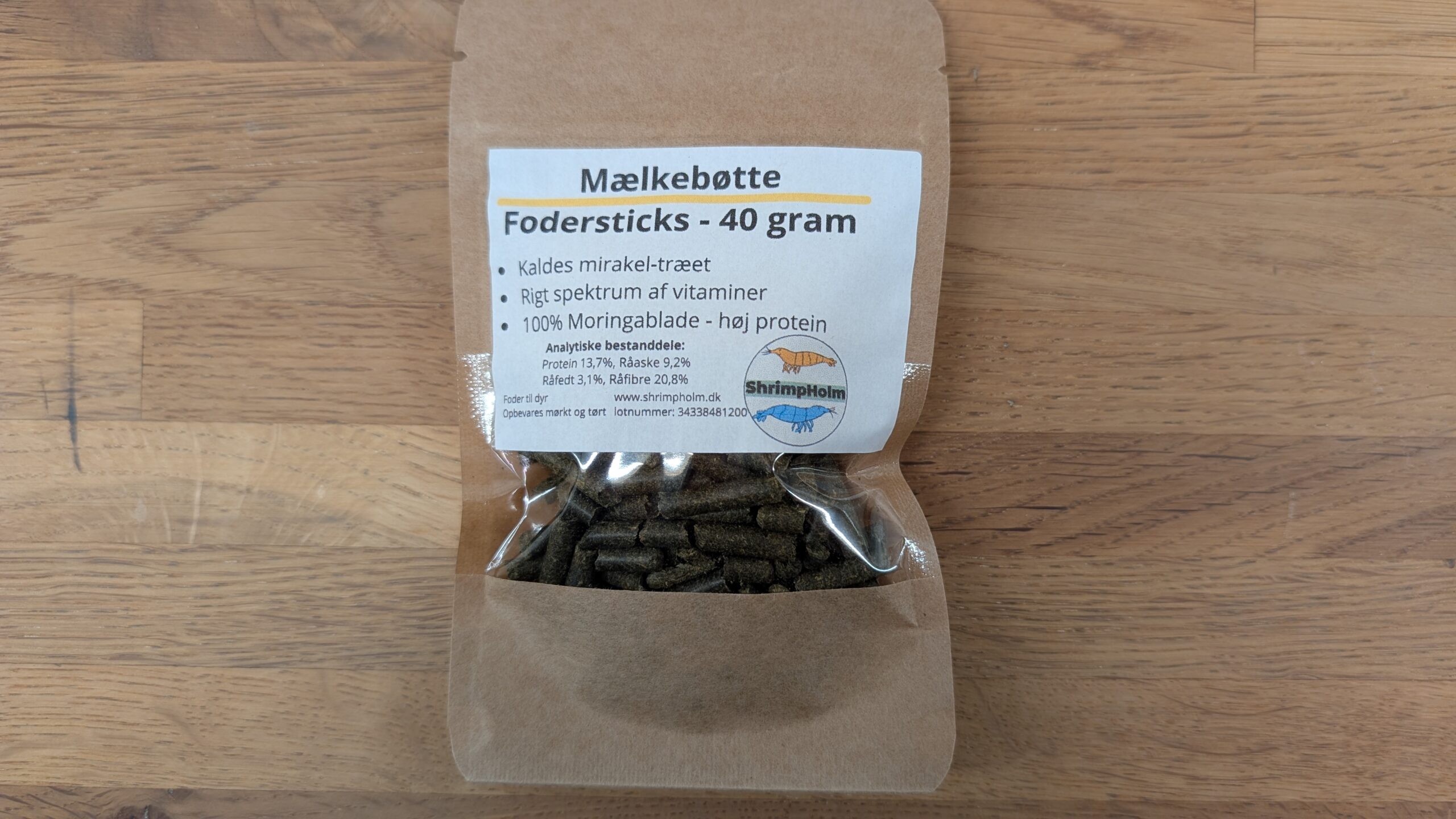 Mælkebøtte – ShrimpHolm fodersticks, 40 g består af 100% tørrede og pressede mælkebøtte.