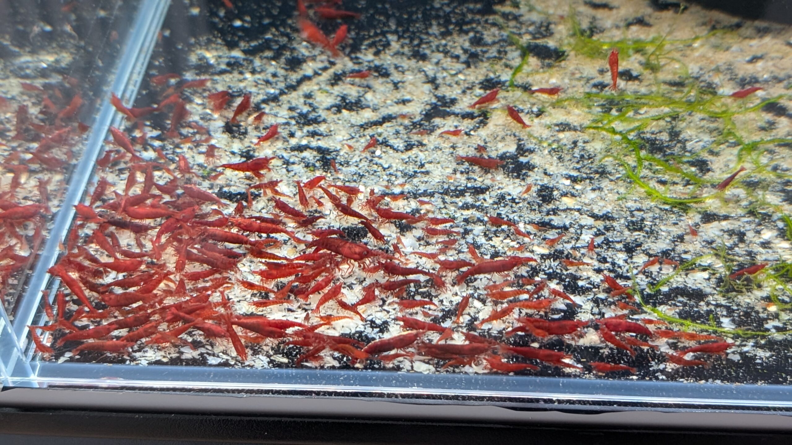 Miljøberigelse og stimulering: Visne blade, træstykker og andre naturlige produkter tilføjer tanniner til vandet, hvilket de også har i deres oprindelige habitat. Tanniner har generelt en gavlig effekt på rejernes helbred. Derudover giver det også rejerne et gemmested, hvilket er med til at de føler sig trygge – især i forbindelse med skalskifte. Det anbefales derfor at tilføje dette. Se her